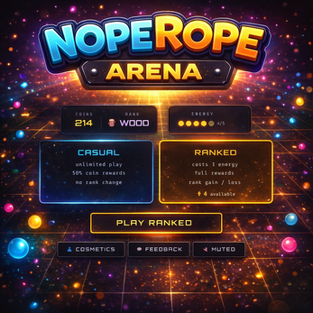 Whether you want a quick casual run or a more competitive ranked match, NopeRope Arena is built around fast restarts, addictive improvement, and chasing better runs.